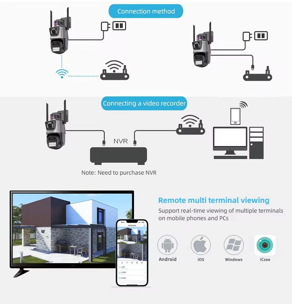 كاميرا مراقبة بالكهرباء Wi-Fi او 4G V380 PRO APP